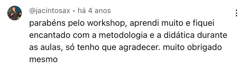 Veja o que o Alisson disse sobre o Workshop de Arranjos.
