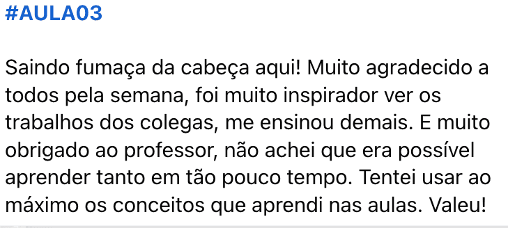 "O desenvolvimento que tive em 3 aulas foi maior do que anos de tentativas e erros"
