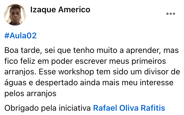 Veja o que o Alisson disse sobre o Workshop de Arranjos.